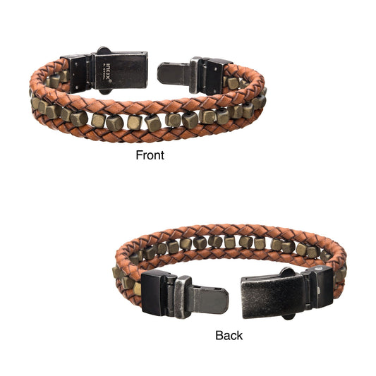Brown Braided Leather with Gold Hematite Bead Bracelet