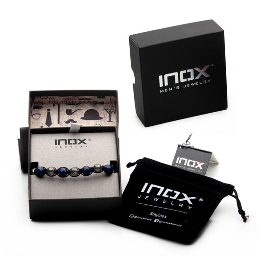 Stainless steel and lapis Stone bead braided bracelet