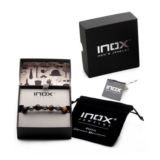Stainless steel and tiger eye stone bead braided bracelet