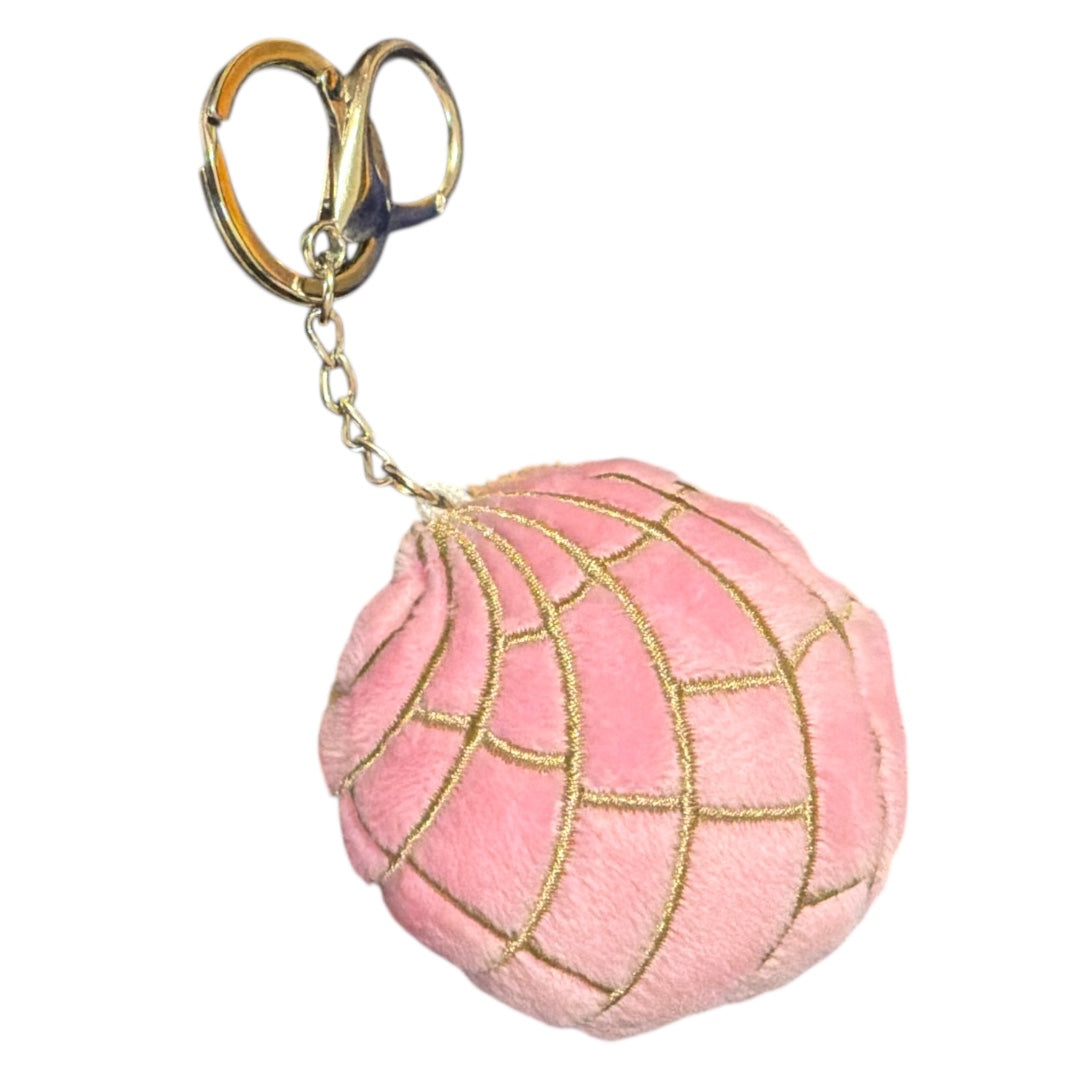 Show off your keys in style with this Pan Dulce plush keychain. Available in many "flavors." This pink keychain comes with a metal key ring and is available in two sizes, 2.5 inches and 1.75 inches in diameter.